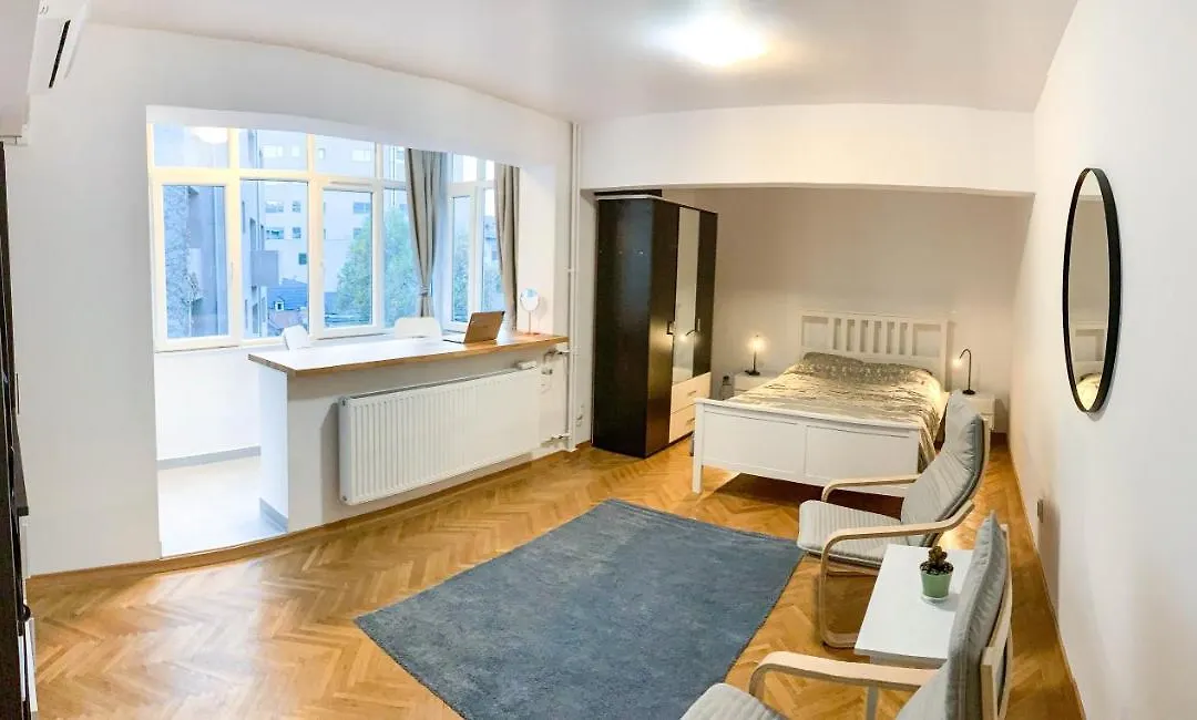 The 35 m² Luterana Studio Apartment apartment is positioned in the very heart of Bucharest, around a 6-minute walk from Cismigiu Gardens.